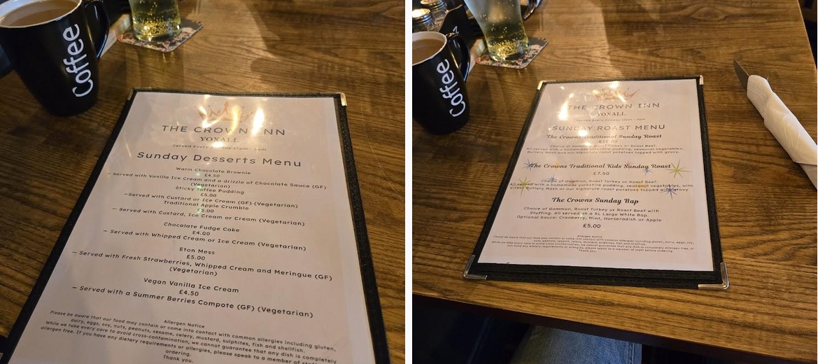 I recently visited The Crown Inn in Yoxall, and I was thoroughly impressed. It’s a charming country pub with a warm, welcoming atmosphere. I went on a Sunday when the traditional roast was on offer, but I asked for something a little different – a beef salad – and they were more than happy to accommodate my request. The service was excellent from start to finish. The staff were friendly, attentive, and genuinely lovely – they really made me feel at home. The decor is tasteful and cosy, and everything was spotlessly clean and fresh. All in all, it was a fantastic visit. Great food, great surroundings, and even better people. I’ll definitely be returning. Thank you to the lovely lady who went out of her way to accommodate my needs